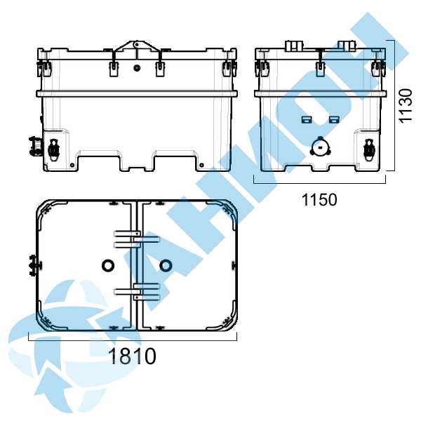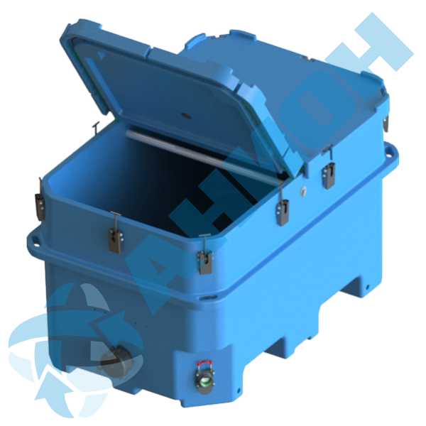 Между крышками и контейнером проложен резиновый жгут, предотвращающий выплескивание жидкости. По углам ванны контейнера имеются четыре ручки. Их можно использовать при погрузочно-разгрузочных работах на пустых контейнерах и для фиксации контейнера при перевозке.