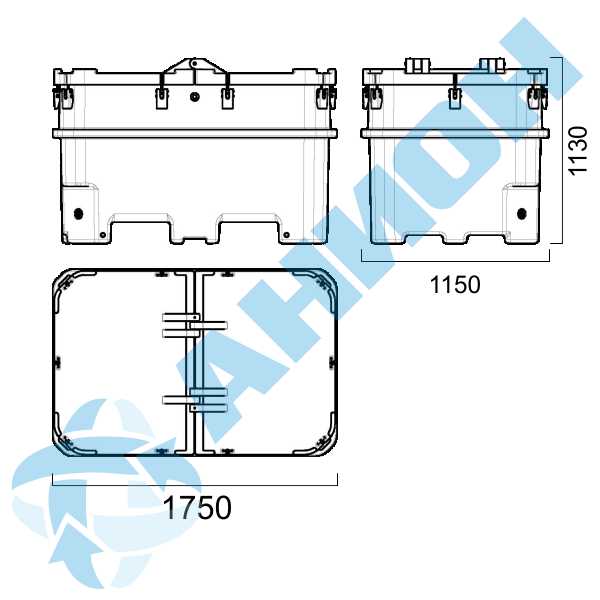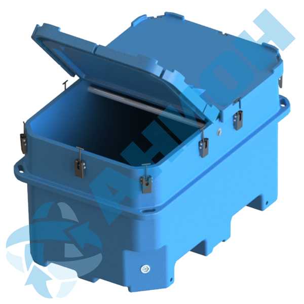 Между крышками и контейнером проложен резиновый жгут, предотвращающий выплескивание жидкости. По углам ванны контейнера имеются четыре ручки. Их можно использовать при погрузочно-разгрузочных работах на пустых контейнерах и для фиксации контейнера при перевозке.
