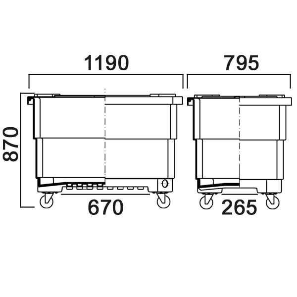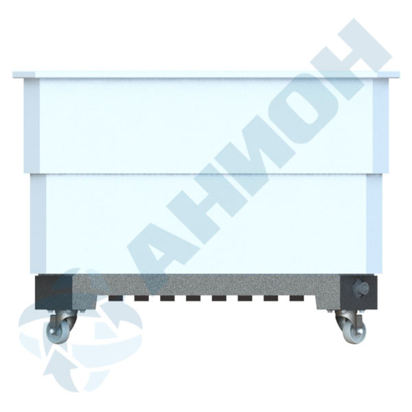 Пластиковый контейнер представляет собой бесшовный резервуар из светостабилизированного полиэтилена на четырех колесах. В нижней части он оснащен двумя сливными штуцерами с заглушками. Дополнительно может комплектоваться съемной крышкой К500.