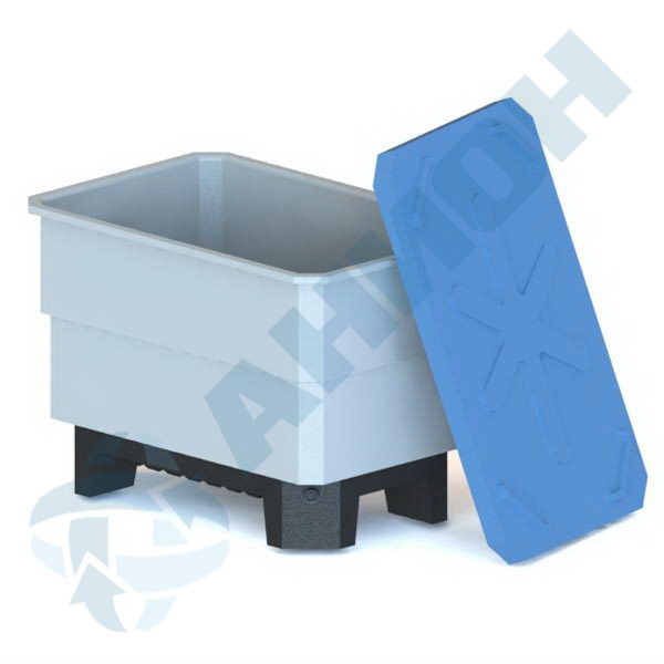 На внешней стороне крышка имеет специальные бортики, благодаря которым в закрытом положении обеспечивает устойчивое штабелирование пустых контейнеров.