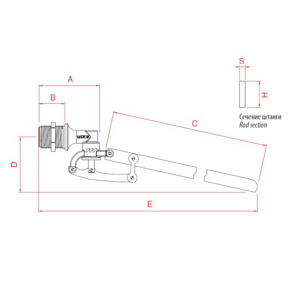 Поплавковый клапан на 5 шпинтах с плоской штангой. Подходит для емкостей средних и больших размеров. Оснащен плоской штангой из нержавеющей стали AISI 430. К штанге присоединяется шар при помощи ползункового крепления. Все рычаги клапна изготовлены из нержавеющей стали.