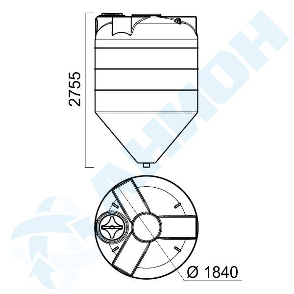 Емкость изготовлена из полиэтилена устойчивого к воздействию УФ-излучения, обладает повышенным сопротивлением к старению. Толщина стенки 5-10 мм. Дно имеет форму конуса с отлитым патрубком с внешним диаметром 110 мм с не прорезанным отверстием для подсоединения трубопроводов.
