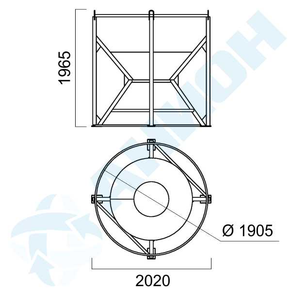 Металлическая корзина КДБ5000 используется для установки на нее конусной емкости объемом 5000 л.