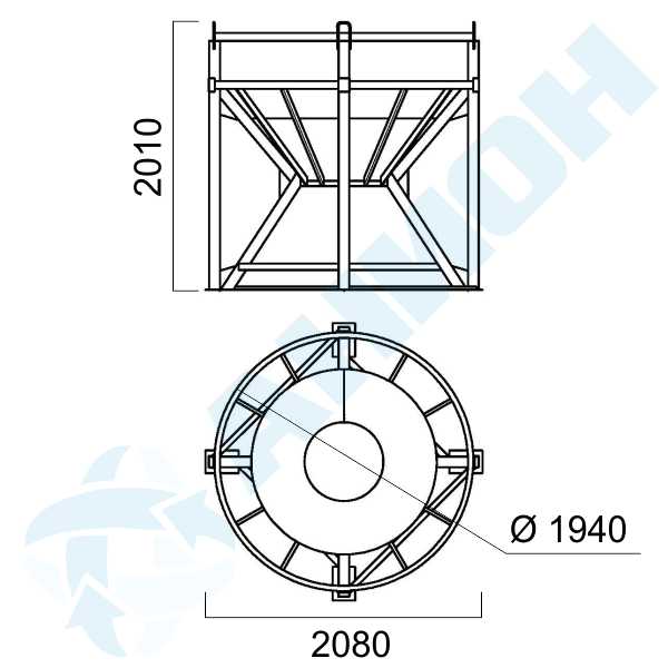 Металлическая усиленная корзина КДБ5000 используется для установки на нее конусной емкости Б5000_2УШК объемом 5000 л.