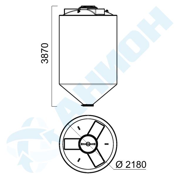 Емкость конусная 11500 л с дыхательным клапаном, с шибер-заслонкой