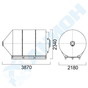 Конусная емкость объемом 11500 л предназначена для стационарного хранения жидких веществ с максимальной плотностью до 1,2 г/см3 (вода, пищевые продукты и т.п.).