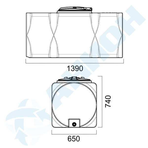 Емкость имеет эргономичную прямоугольную форму, горизонтальное исполнение и компактные размеры, благодаря которым бак можно проносить в стандартный дверной проем. Горловина позволяет обслуживать емкость внутри. В комплект входит откидная крышка с поплавковым дыхательным клапаном.
