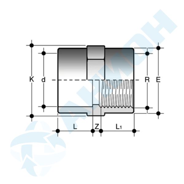 Муфта переходная с внутренней резьбой D40 - 1 1/4", ПВХ, MIFV040114