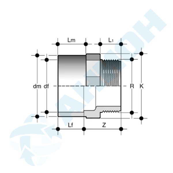 Двойной муфтовый адаптер c наружной резьбой. Входит в группу фитингов, предназначенных для транспортировки жидкостей под давлением, соединяемых методом холодной сварки.