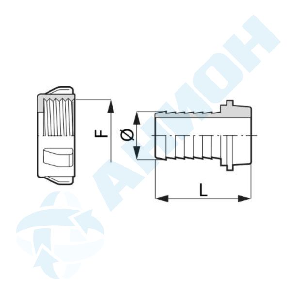 Ниппель прямой под накидную гайку D32 - М42, NYLON