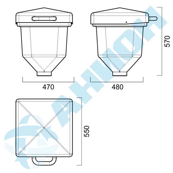 Бункер из полиэтилена вместимостью 45 литров может использоваться во многих сферах хозяйства: аквакультуре, на фермах, в приусадебном хозяйстве и др.