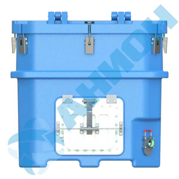 Изотермический контейнер КРИ1200_ПЛН_КВ вместимостью 1200 л предназначен для перевозки живой рыбы.