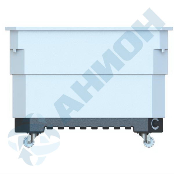 Пластиковый контейнер представляет собой бесшовный резервуар из светостабилизированного полиэтилена на подставке с четырьмя колесами. В нижней части он оснащен двумя сливными штуцерами с заглушками. Дополнительно может комплектоваться съемной усиленной крышкой К650. Крышка крепится к изделию четырьмя резиновыми запорами (рабберами).
